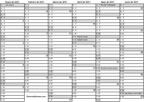 Calendario 2031